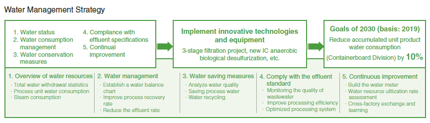 ◆ The containerboard division targets a 10% reduction in unit product water consumption (base year: 2019)