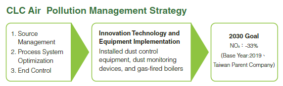 CLC upgraded equipment to reduce air pollution, including constructing an indoor coal yard at Houli Paper Mill in 2019 to control particulate emissions. In 2020, CLC added dust control equipment at coal bunker entrances and exits, installed water mist foam dust removal devices, and introduced a baghouse ash pneumatic conveying system. Multiple SCR units were installed to improve air quality. Biogas desulfurization equipment was installed at the Tayuan Paper Mill wastewater treatment plant, the G2 unit at Houli Paper Mill operated at reduced load, and high-quality coal was procured, significantly reducing SOx emissions.