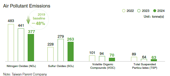 ◆ Taiwan Parent Company target: 33% reduction in NOx emission concentration (baseline year: 2019)