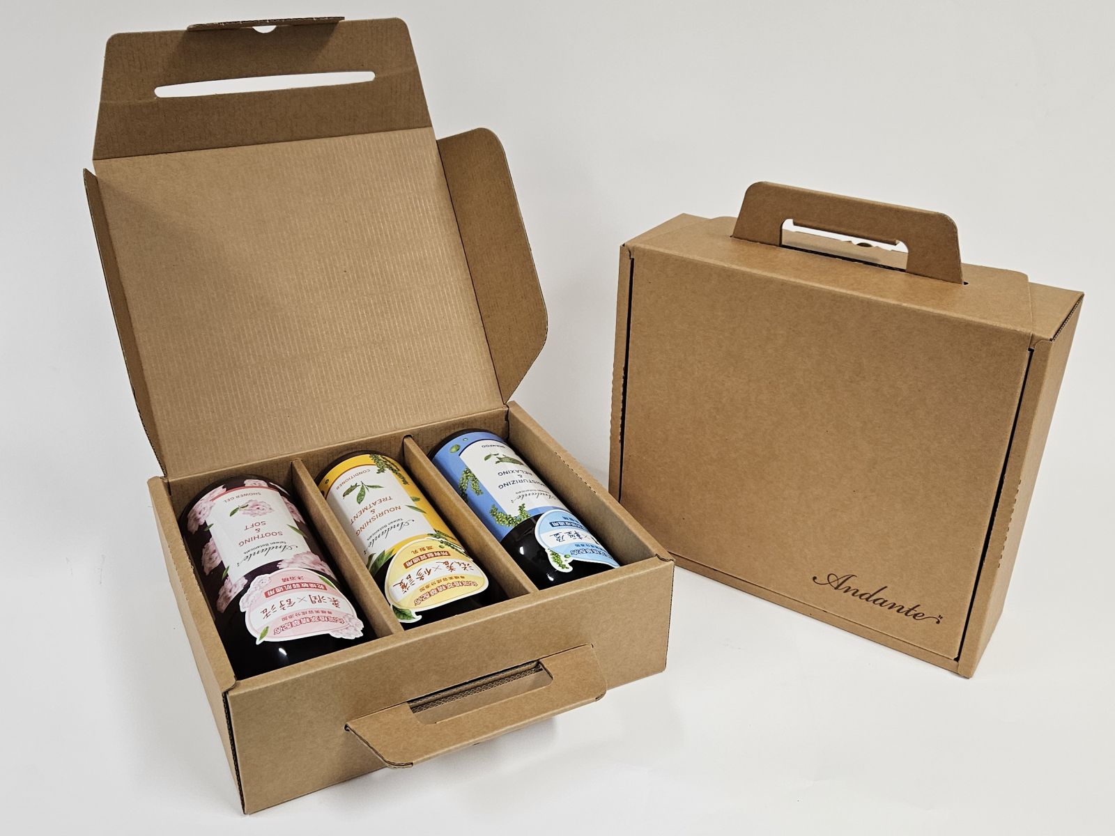 禮盒結構亦有諸多巧思,紙提把可承重約2公斤,同時具鎖閉外蓋功能,展現結構強度與設計美感。內層隔板設有「紙拆引導孔」,便於消費者輕鬆拆解、平整回收,也能再利用為收納提盒,延續包裝生命週期。